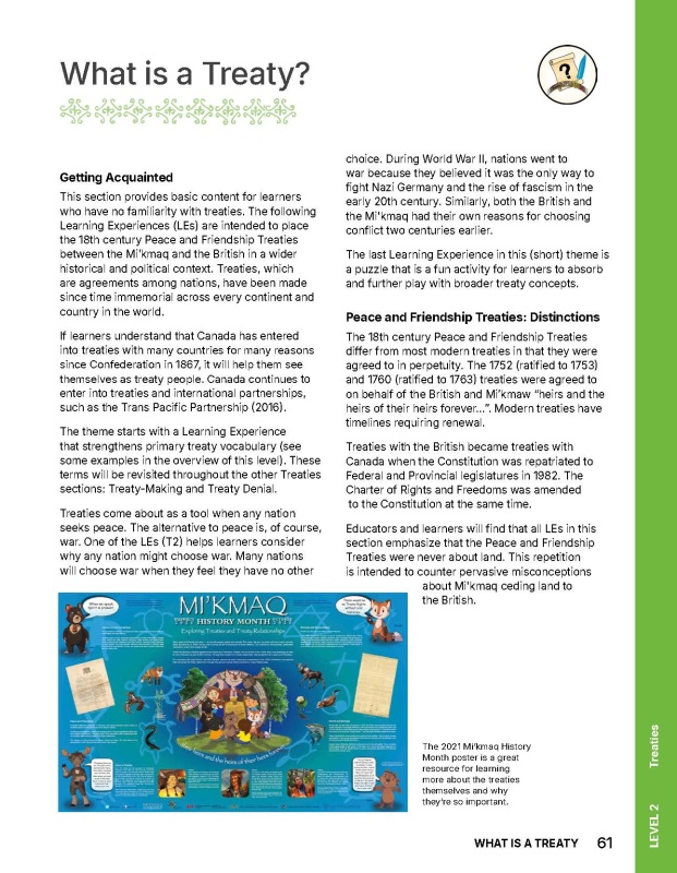 For example, the Mi’kmaq specifically protected netukulimk in the treaty-making process, only to have the Treaty Denial period ignore and actively restrict Mi’kmaw ways of knowing and being. Mi’kmaw priorities found in the treaties are grounded in Mi’kmaw culture and worldviews. Understanding Mi’kmaw experience does not need to be complicated or difficult. However, a logical progression makes understanding easier, which is why the three sections should be explored in the order in which they appear.