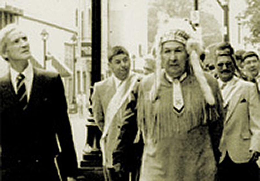 Kji-Saqmaw Donald Marshall Sr. (front right) leads the 1988 Treaty Day parade in downtown Halifax with Mayor Ron Wallace (front left). (Courtesy of Micmac News vol. 18, no. 10, October, 1988, p. 3)